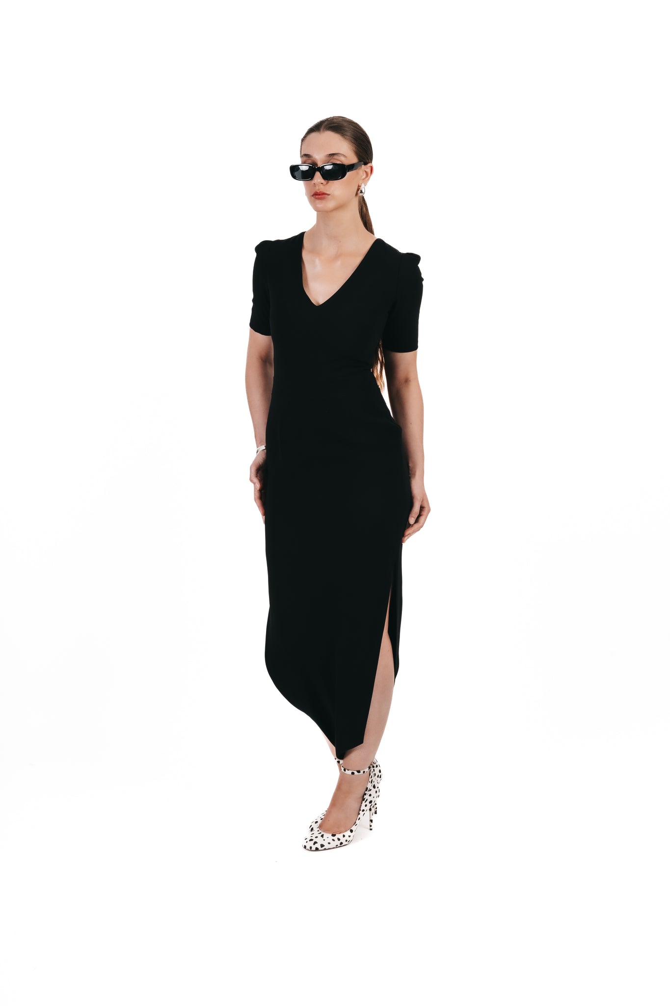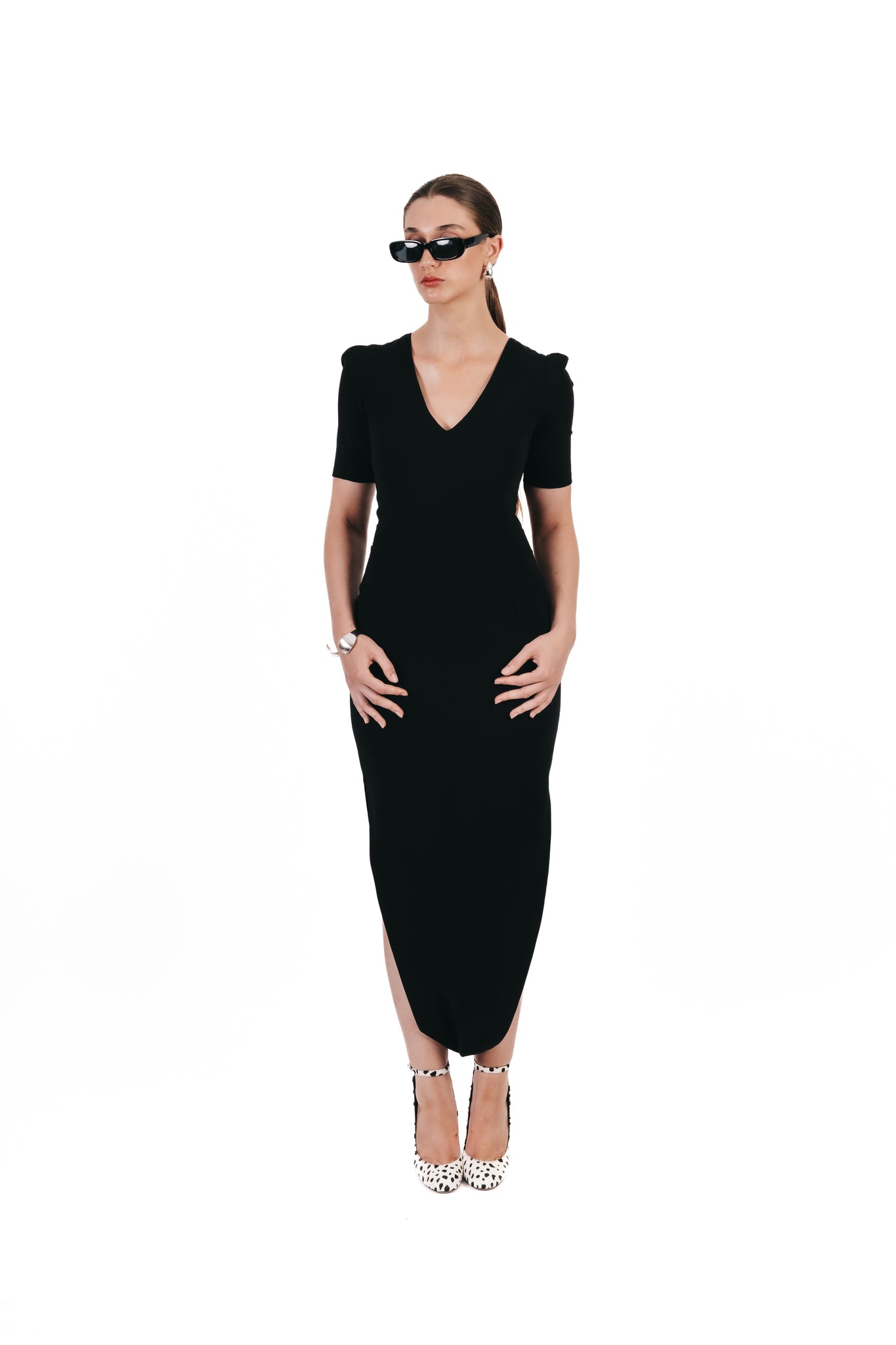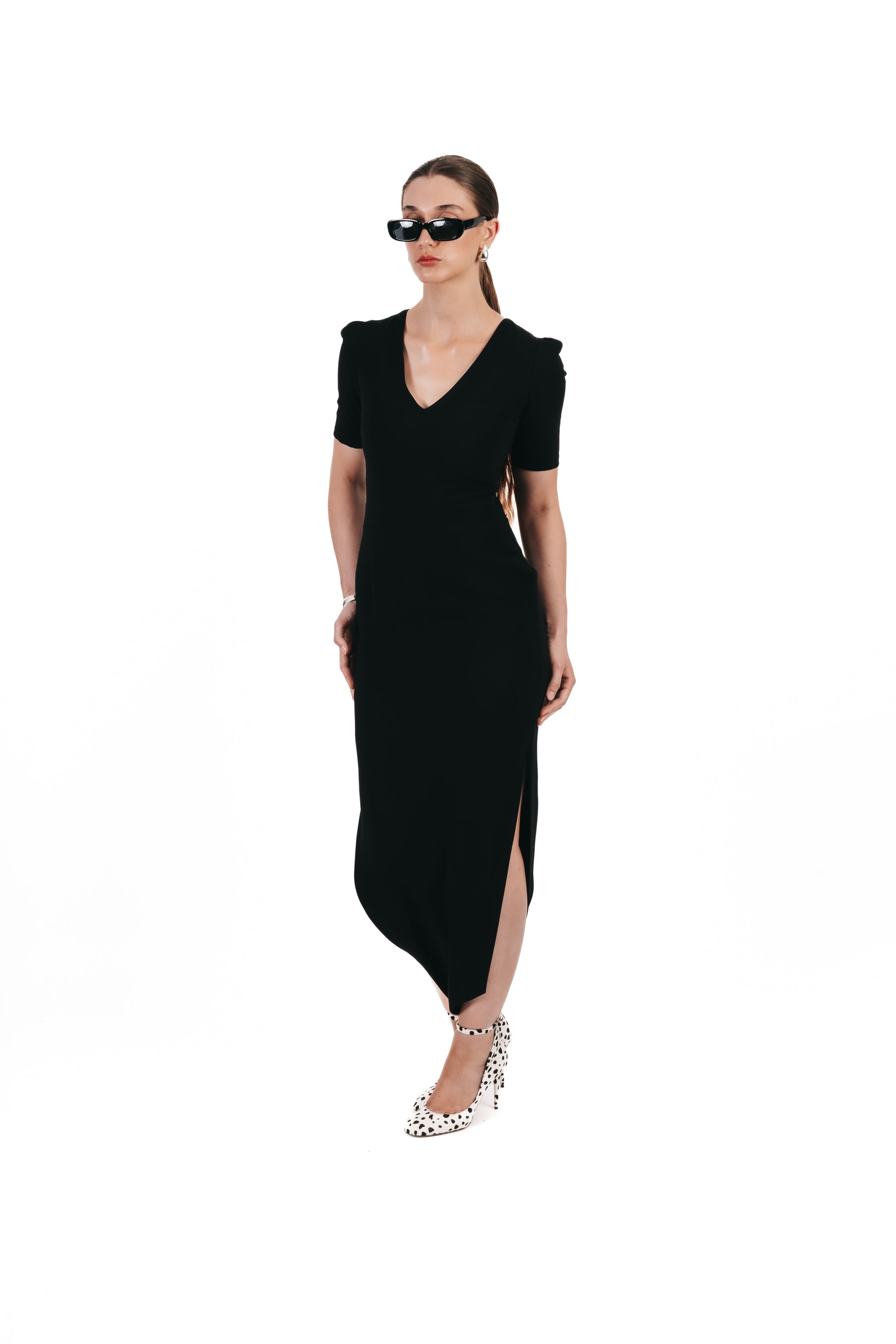 Confectionnée en crêpe léger, la combinaison Badroune d’Ayra séduit par son décolleté en V flatteur, ses manches courtes raffinées et sa fermeture invisible au dos.