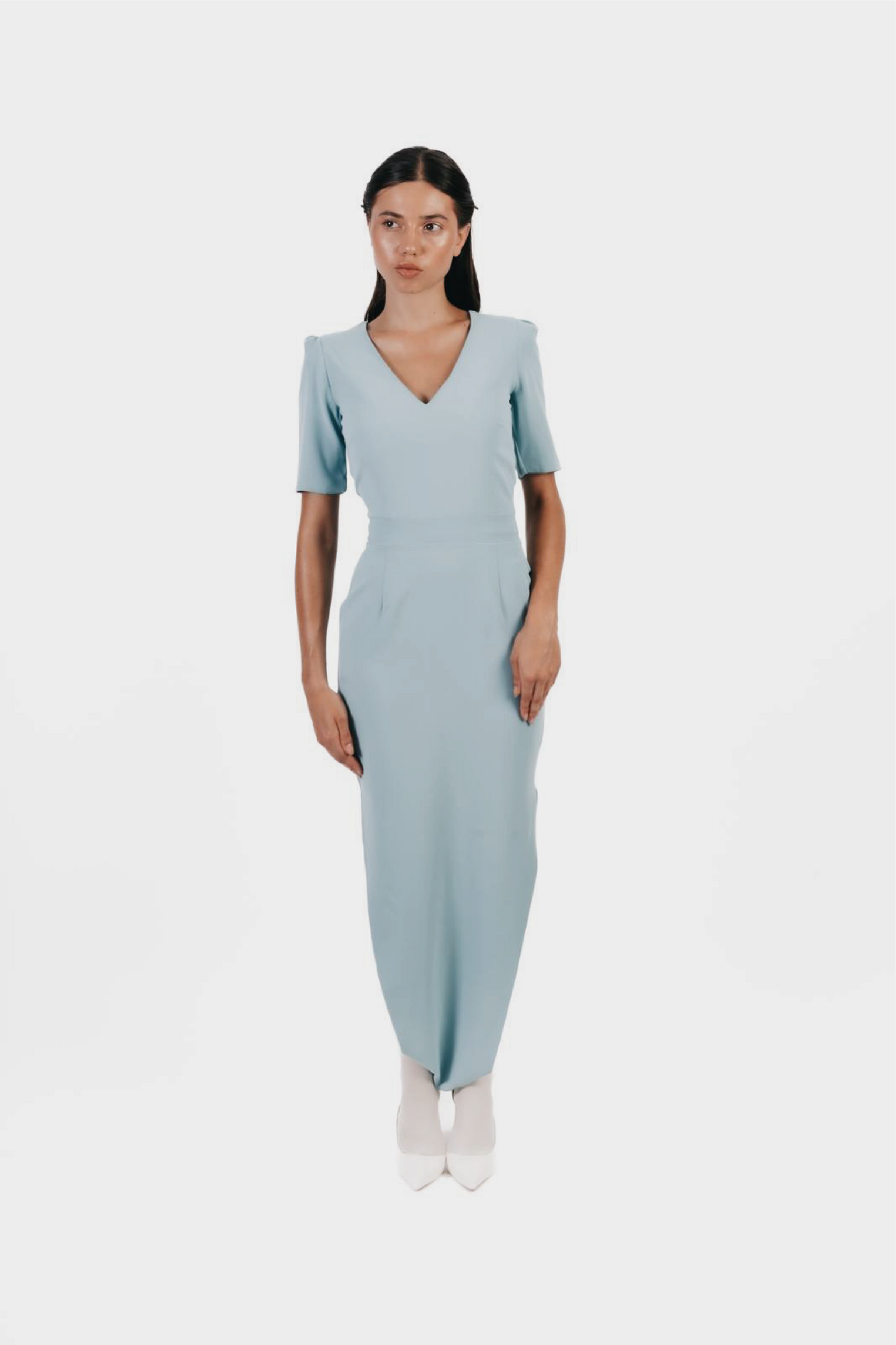 Confectionnée en crêpe léger, la combinaison Badroune d’Ayra séduit par son décolleté en V flatteur, ses manches courtes raffinées et sa fermeture invisible au dos.