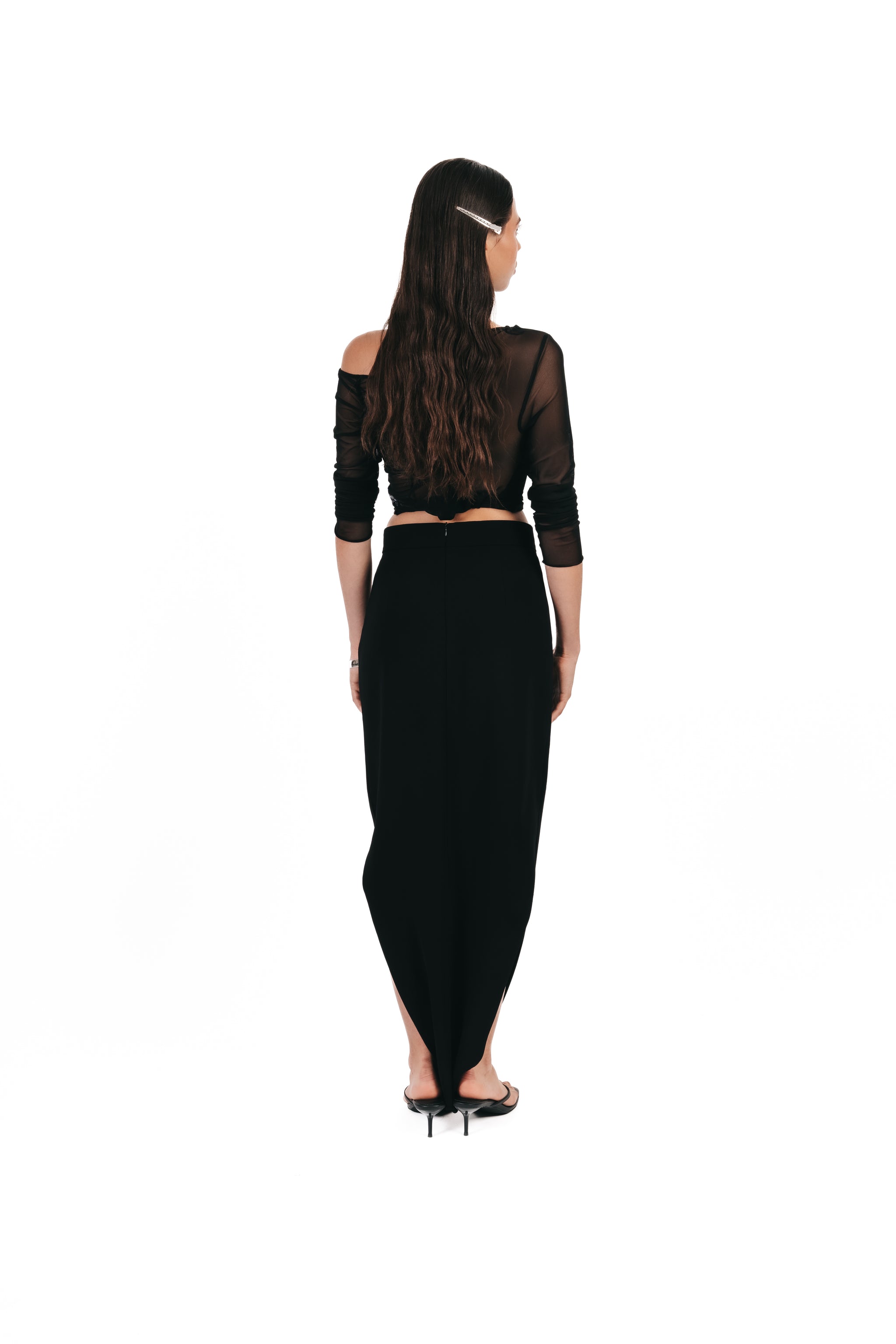Le sarouel BEYA incarne une vision contemporaine de l’élégance. Confectionné en crêpe fluide, il se distingue par une taille haute structurée, une fermeture invisible au dos et une doublure intégrale en acétate, offrant un confort optimal sans compromis sur le style.