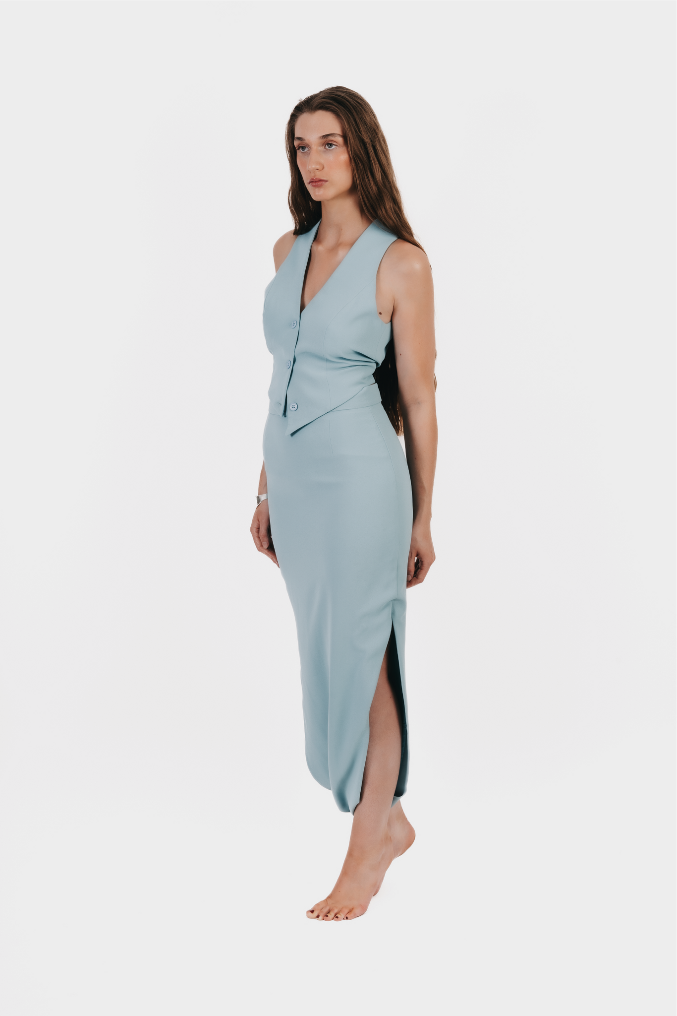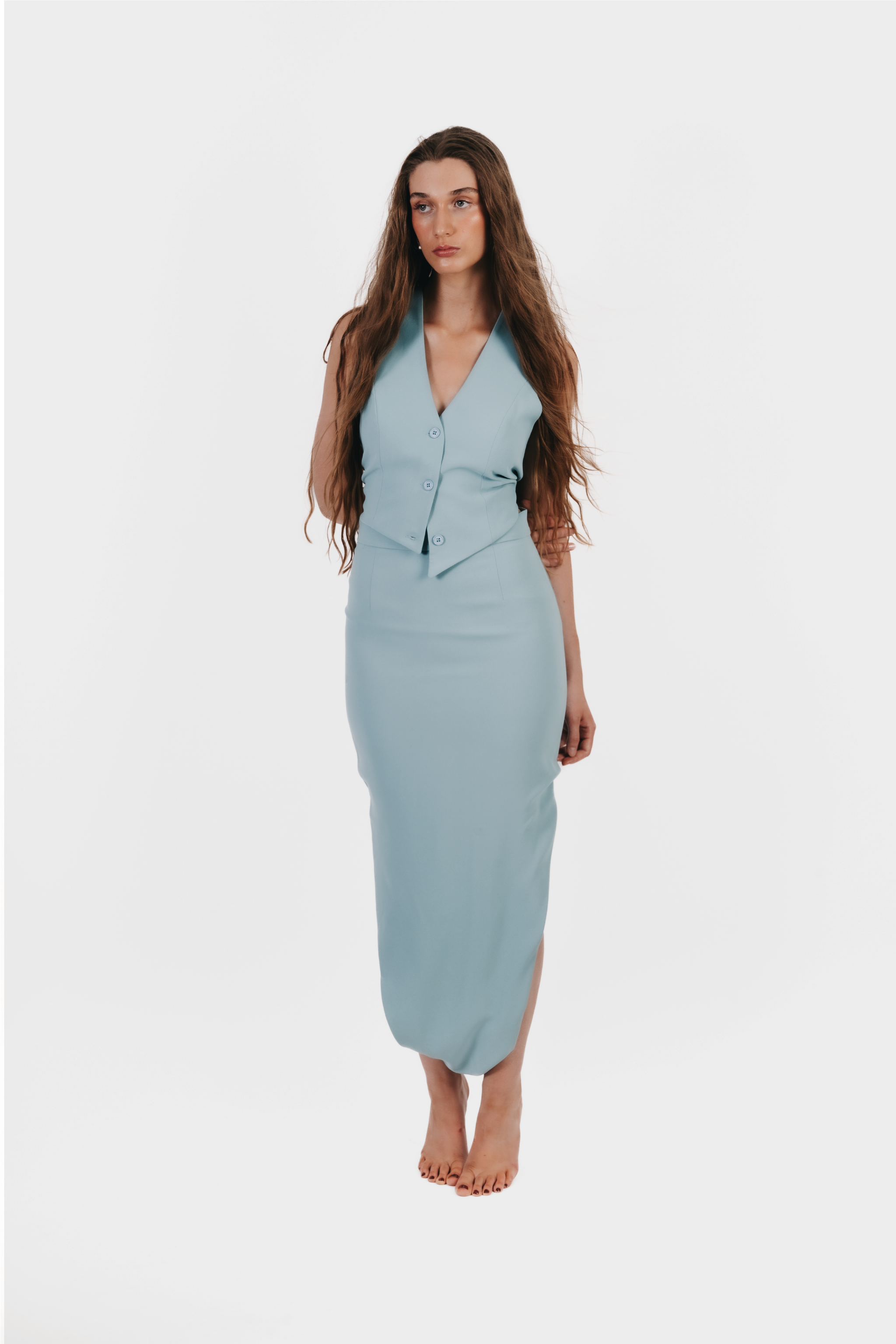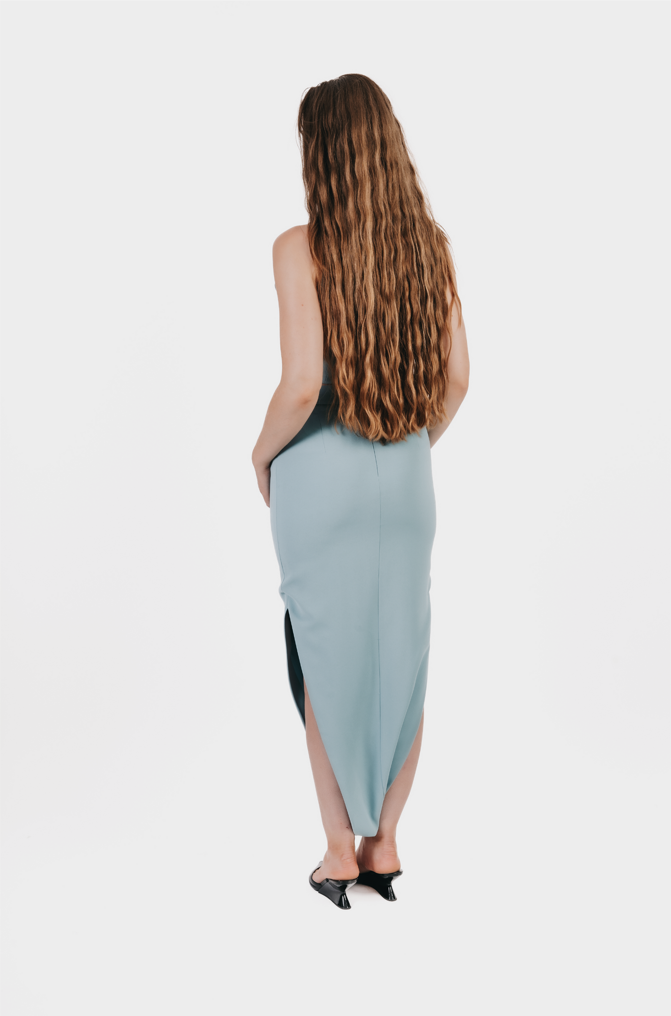 Le sarouel BEYA incarne une vision contemporaine de l’élégance. Confectionné en crêpe fluide, il se distingue par une taille haute structurée, une fermeture invisible au dos et une doublure intégrale en acétate, offrant un confort optimal sans compromis sur le style.