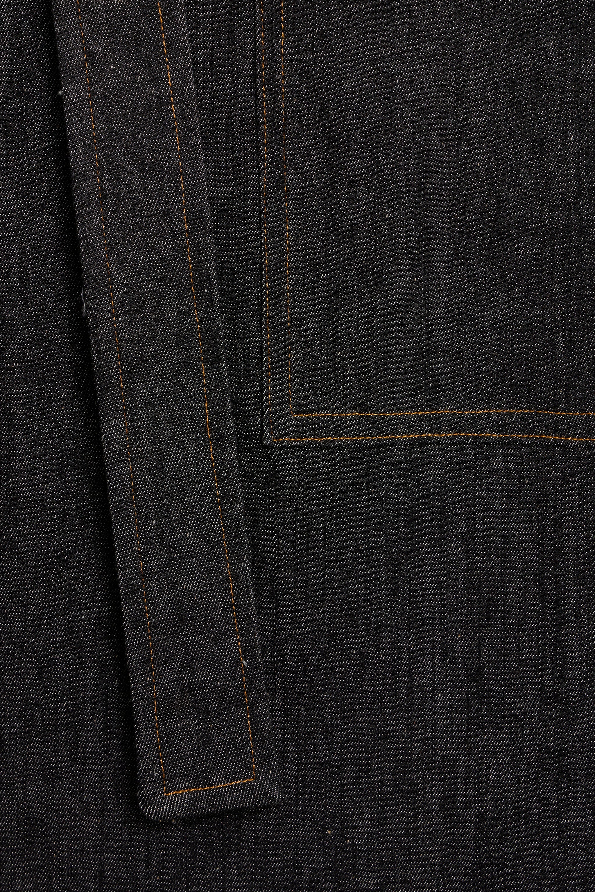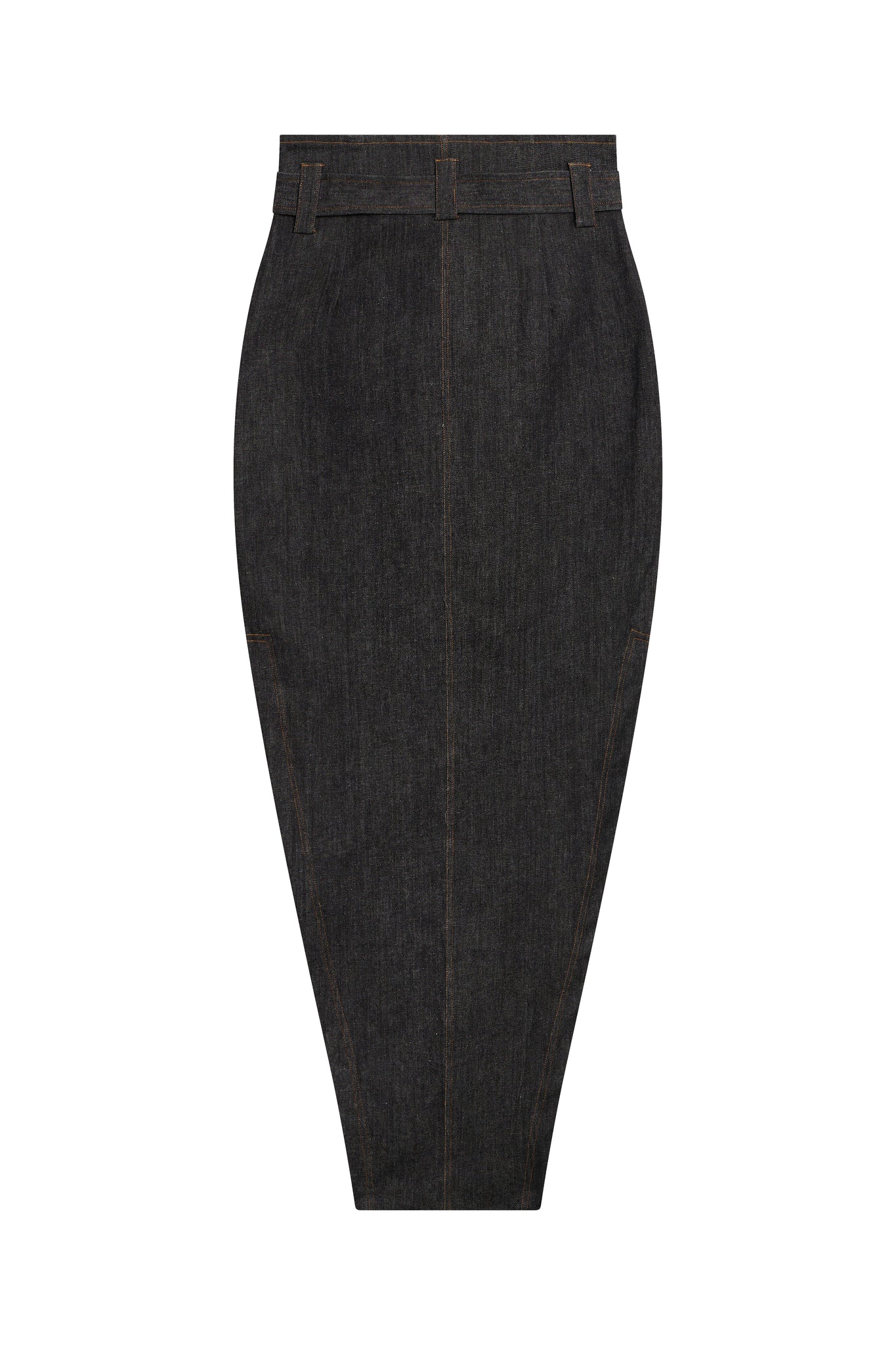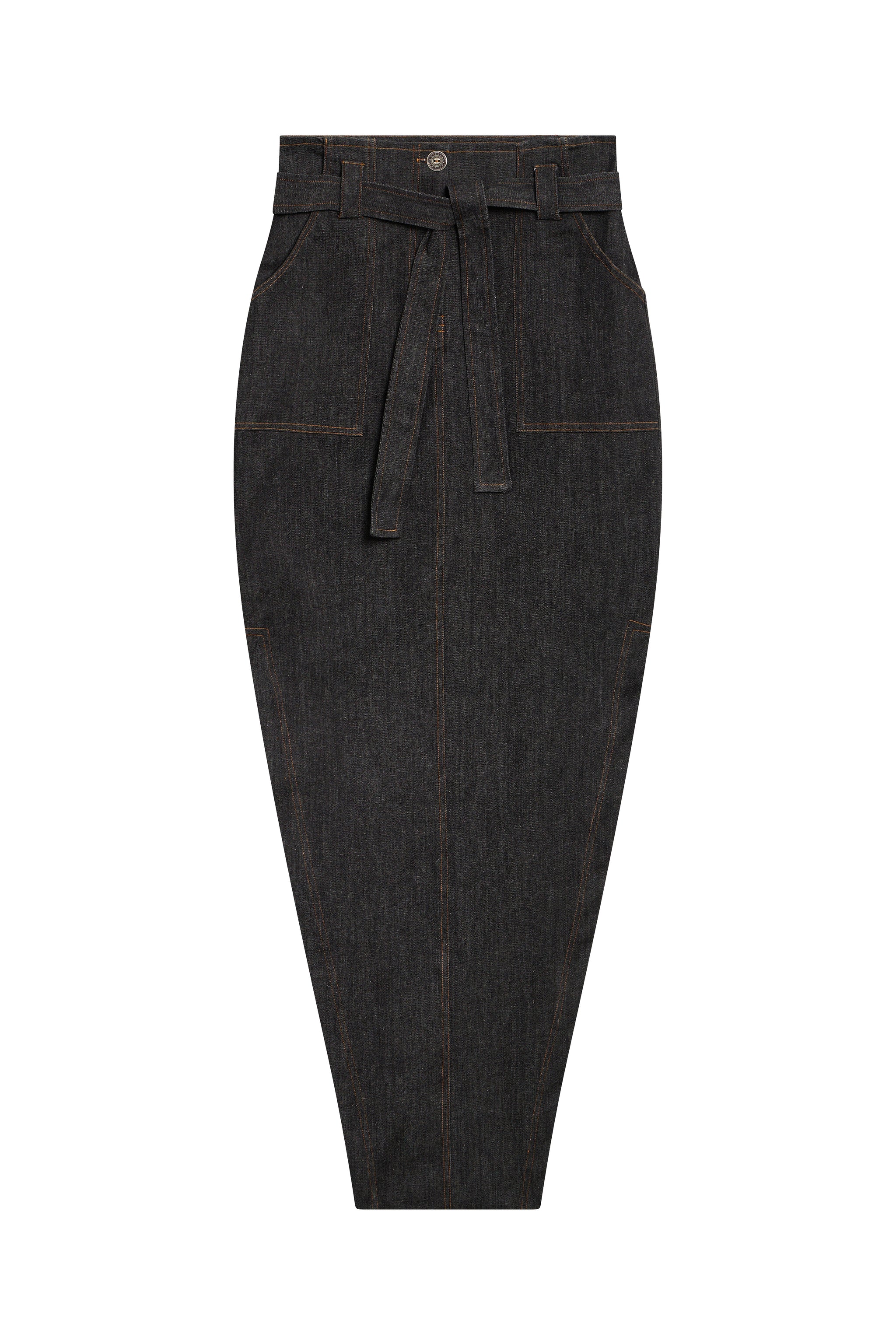 Confectionné en denim noir souple, le sarouel BYBA revisite une coupe emblématique avec une taille haute ceinturée et une silhouette fluide.