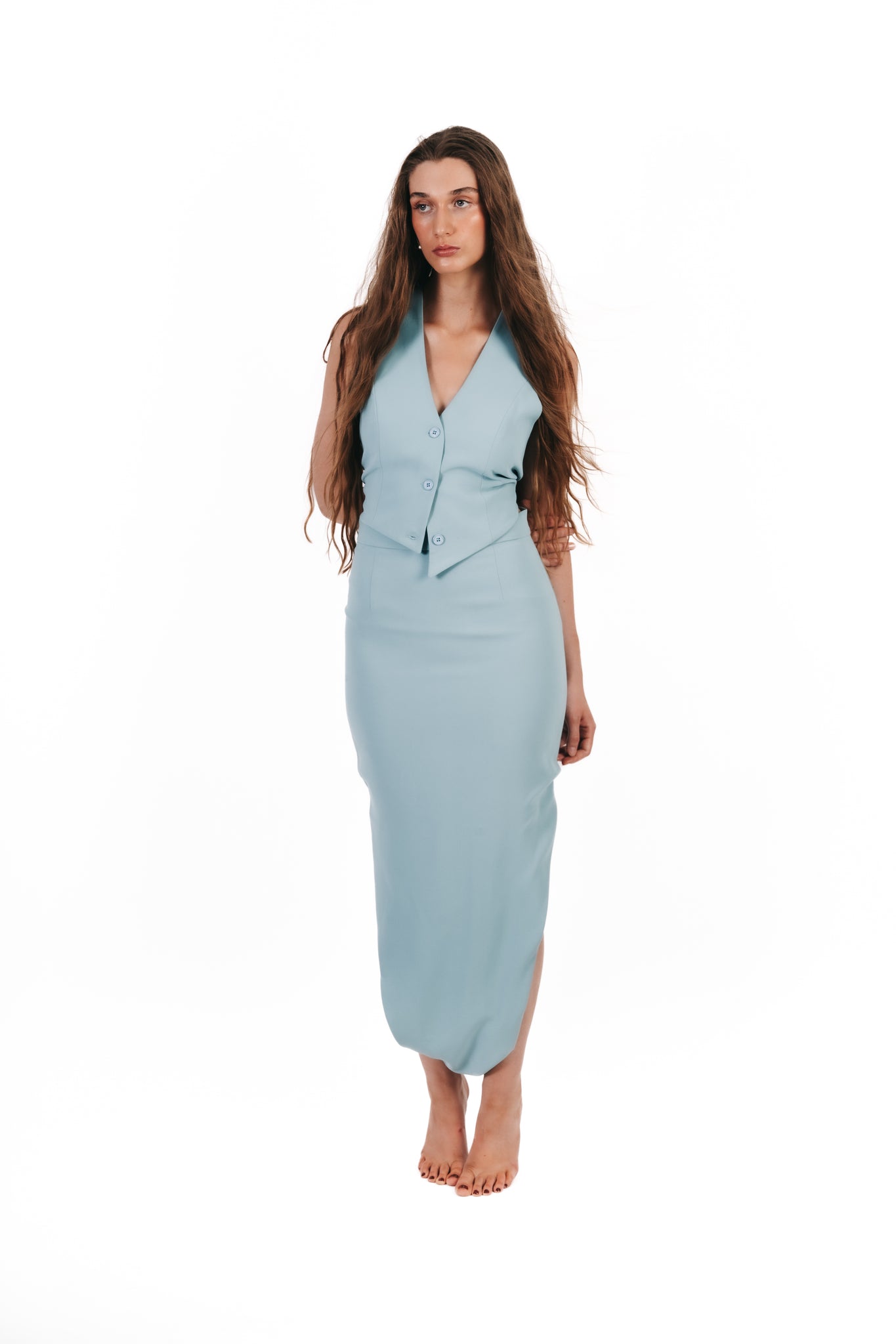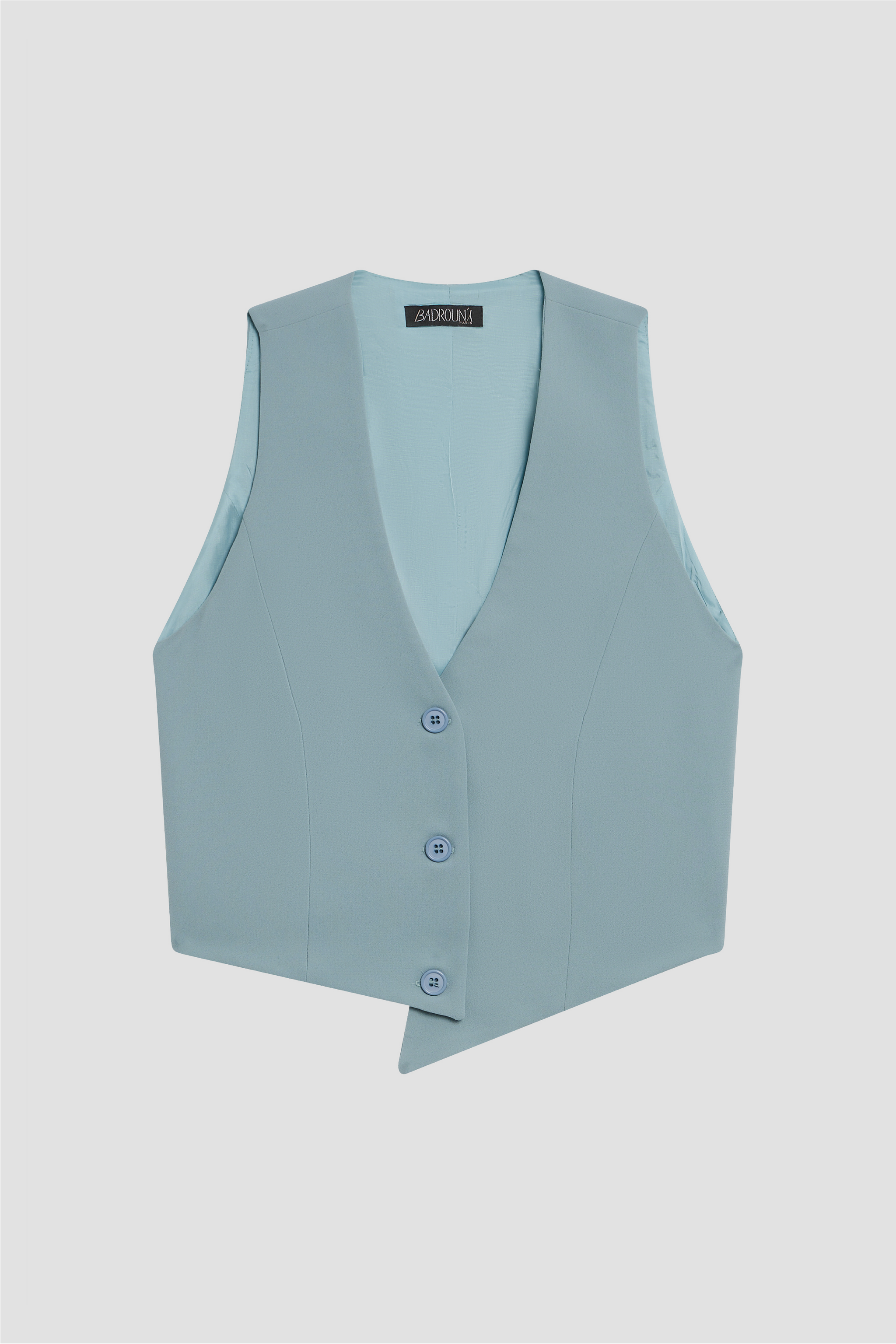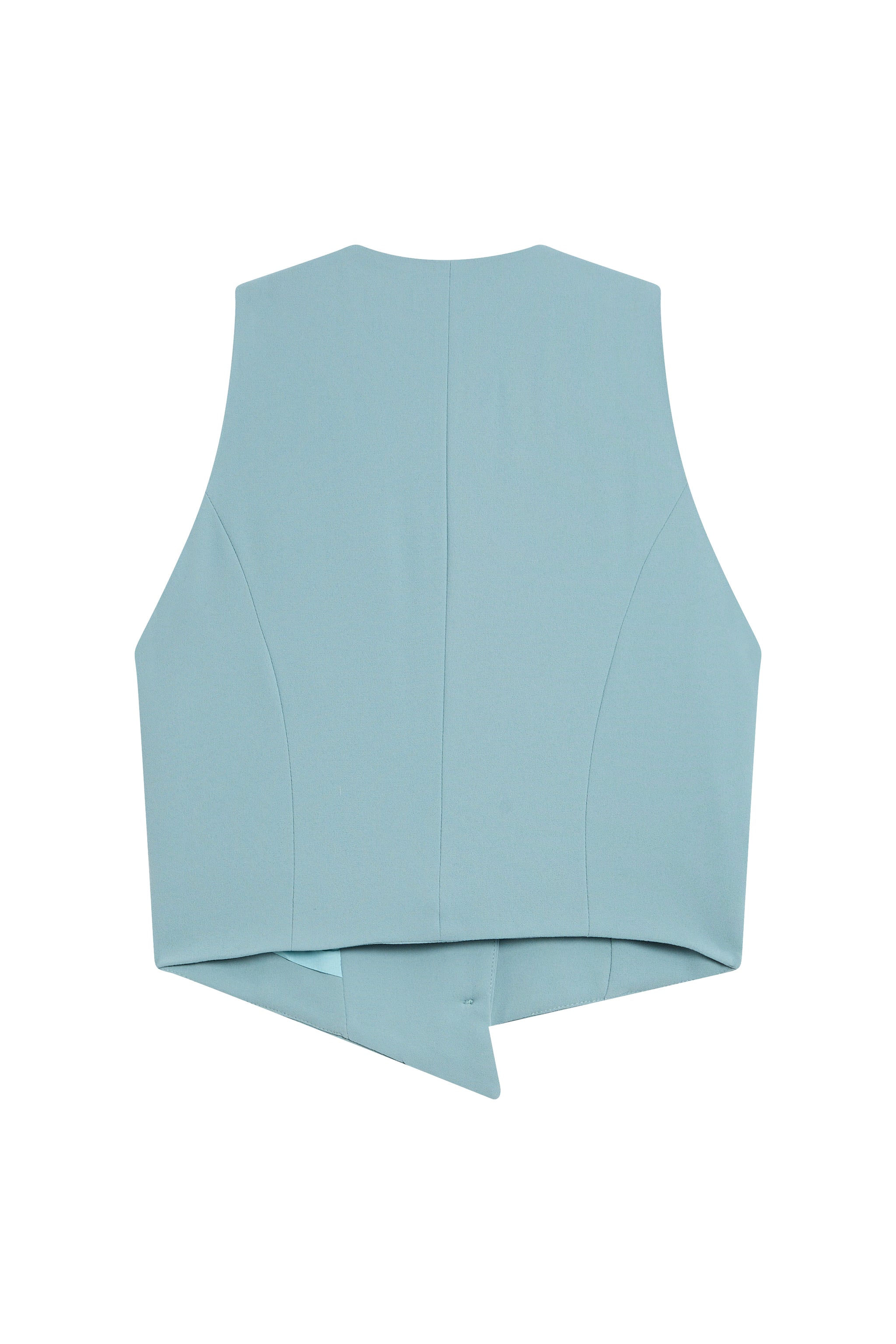 Le gilet Cyria réinvente une pièce essentielle avec une coupe asymétrique fluide et contemporaine. Confectionné en crêpe léger, il se porte à même la peau ou superposé, pour un effet de style immédiat.