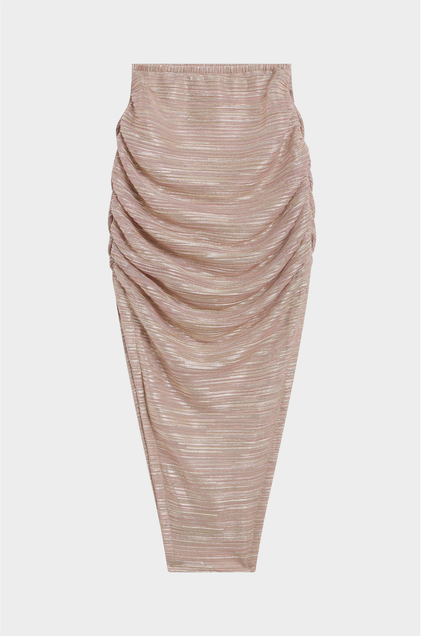 Coupe sarouel froncée sur les côtés, tissu scintillant en fibres métallisées.